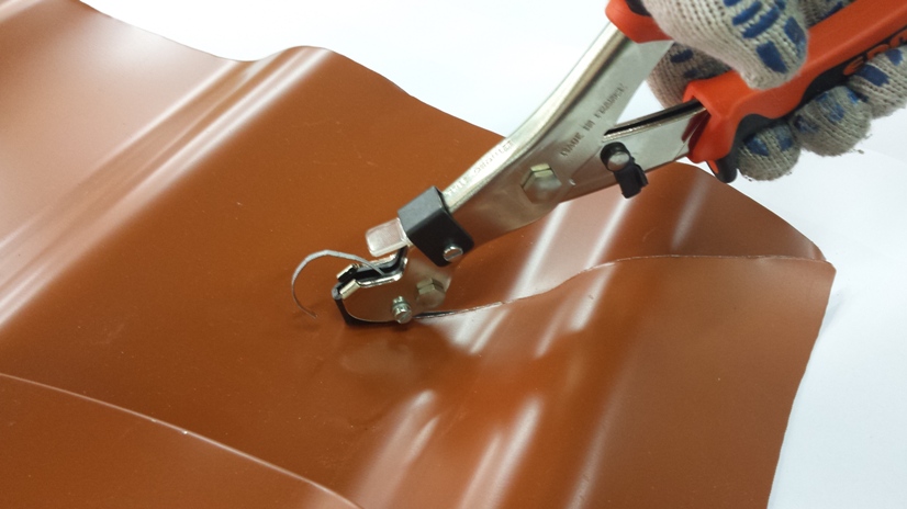 Si vous économisez de l'argent pour acheter des ciseaux pour couper les tuiles métalliques et utilisez une meuleuse pour cela, dans un an, le toit et la clôture seront rouillés et dans quelques années, le revêtement devra être changé. Vous pouvez également louer des ciseaux à feuilles professionnels.