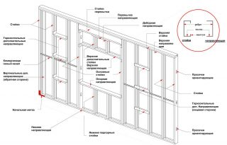 - Calculez le nombre et la longueur du profilé de guidage dans lequel le support est installé. Il s'agit d'un rack vertical légèrement inférieur à la hauteur de la pièce. Le nombre minimum de poteaux est le même que le nombre de coins. Pour les grandes longueurs de murs, des montants intermédiaires seront nécessaires.