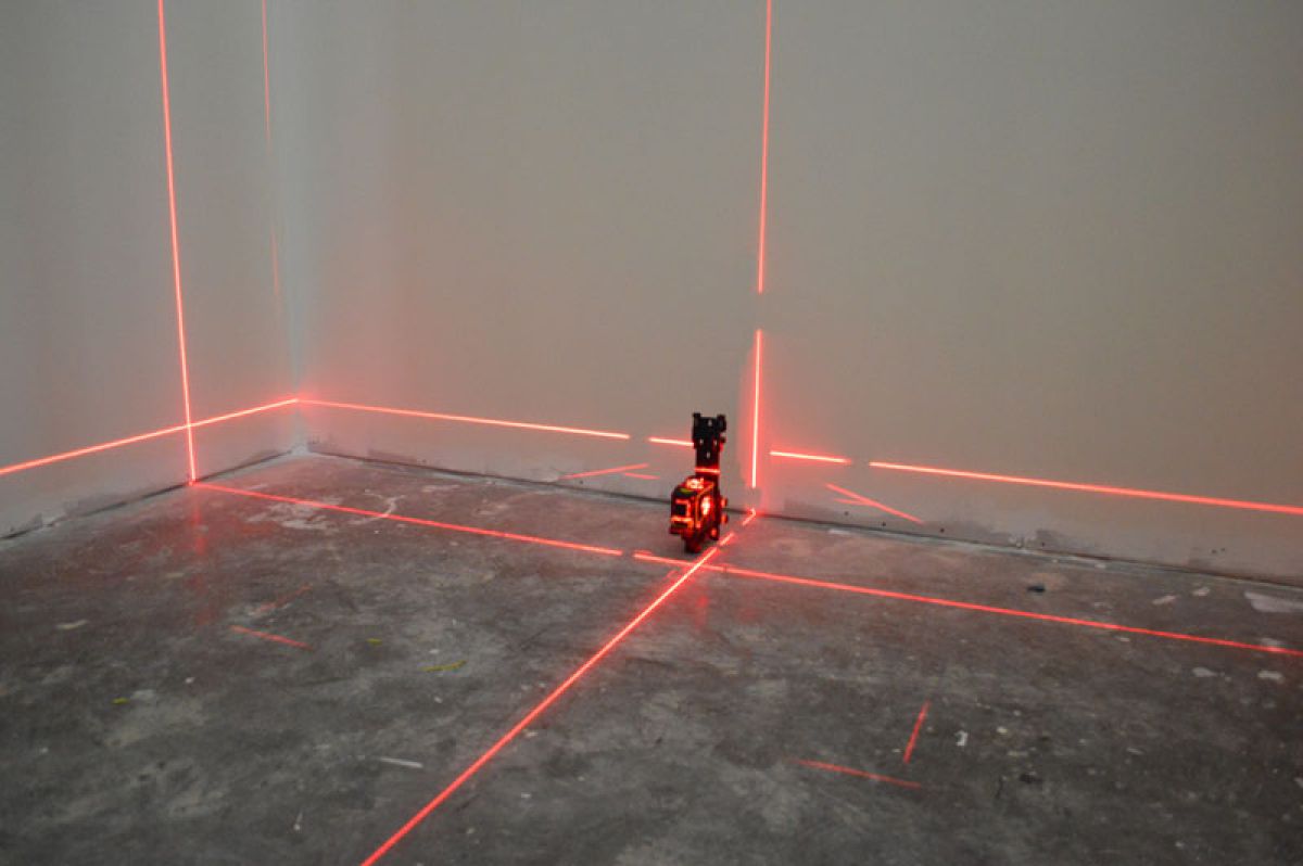 - Du point le plus bas niveau laser poser le point dans d'autres coins de la pièce et connectez-vous avec un marqueur.