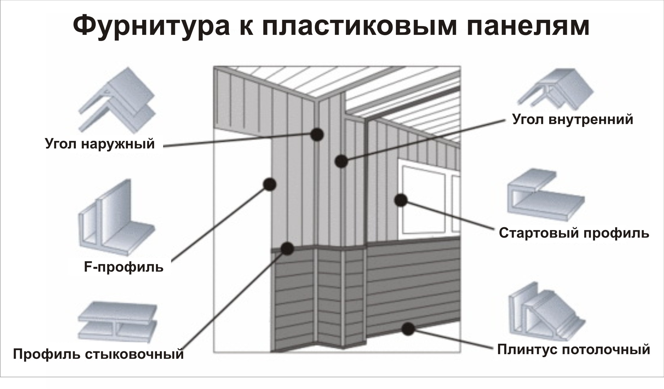 Caisse en plastique Est une option assez nouvelle sur le marché. Les guides sont en plastique, comme un profilé en métal, mais plus légers. Ils sont fixés avec des vis ou des clous. Le matériau ne craint pas l'eau, ne se corrode pas et est suffisamment solide pour supporter le poids des panneaux.
