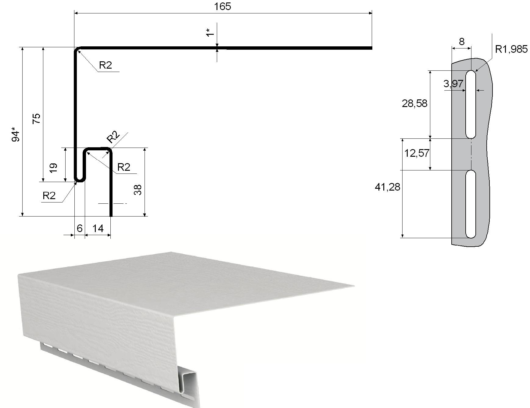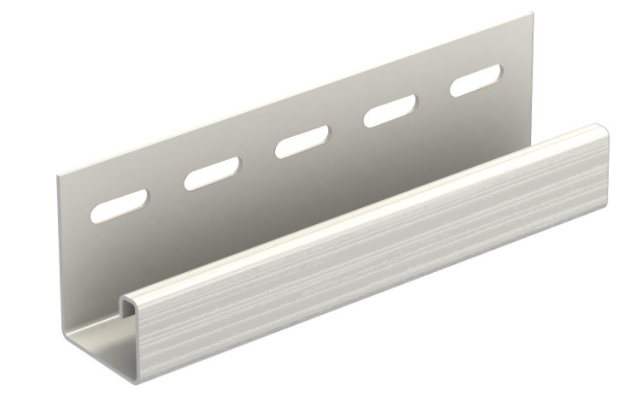- élément J - partie fixation. Il s'agit d'un bord en U qui assure l'assemblage des panneaux dans un même plan. Des trous ovales sont pratiqués le long du bord pour la fixation.