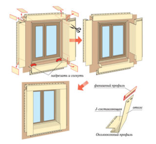 L'encadrement de l'ouverture de la fenêtre donnera à la façade un aspect fini esthétique. Mais en fait, son objectif est différent. "Cadre" autour de l'ouverture protège les joints du bardage avec la fenêtre et empêche la pénétration d'humidité sous le boîtier ou à travers l'ouverture dans la pièce. Lame de fenêtre - un élément spécial qui permet de cacher les extrémités des lamelles et de fermer les joints.