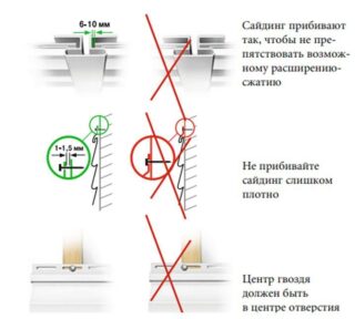 Le point faible de tout bardage sont les joints et les coutures... Les fabricants essaient de développer une telle technologie d'assemblage qui minimiserait leur nombre ou les masquerait en toute sécurité. Le revêtement ne fait pas exception. Lors de l'assemblage, les joints entre les lamelles sont fermés automatiquement grâce à la méthode de connexion "langue-dans-rainure". Cependant, lors de l'assemblage des lamelles dans les coins, près des ouvertures des fenêtres et des portes, des difficultés surviennent.