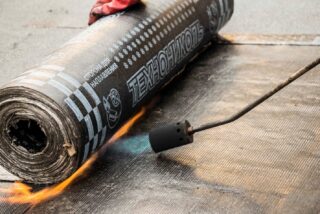 - Si un matériau de toiture autocollant est utilisé, aucun mastic n'est nécessaire. Un tel rouleau est chauffé en fragments et, après chauffage, est collé au toit.