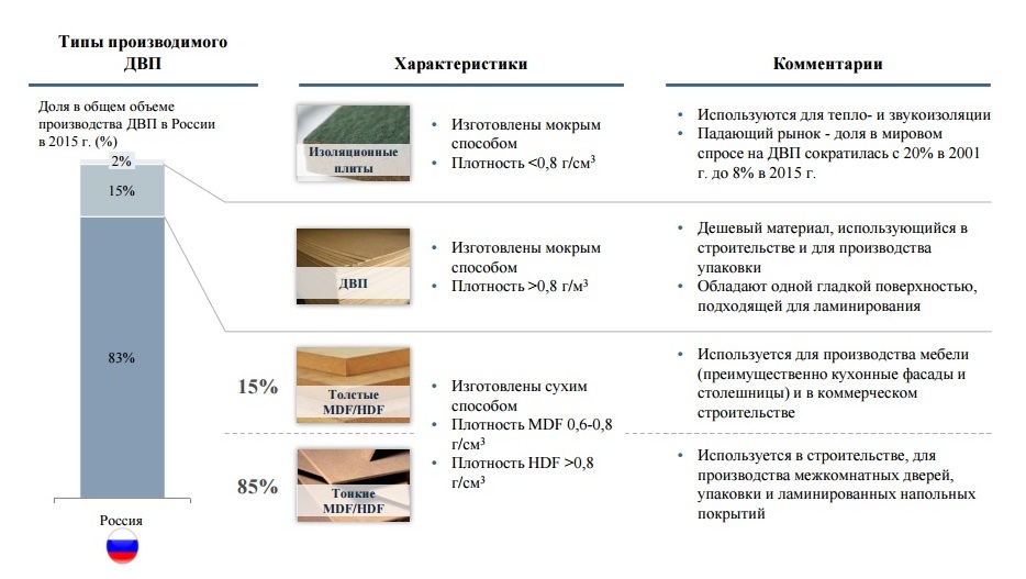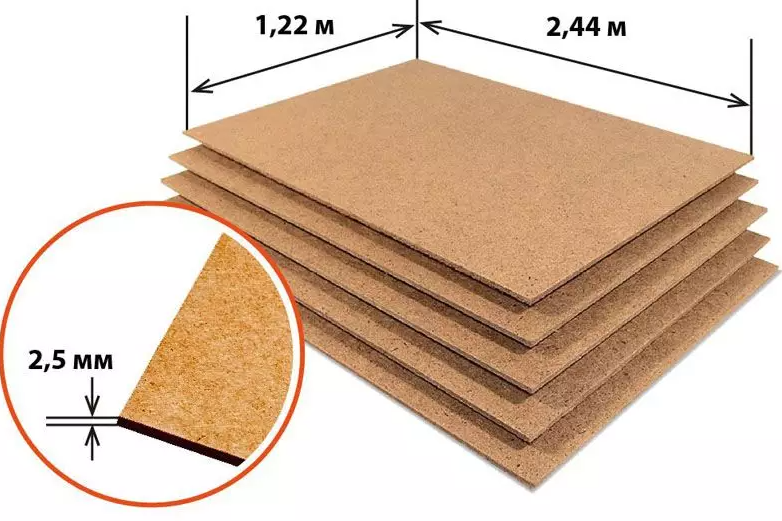 - superdur, dur et semi-dur produit en longueurs de 3360, 3050, 2740, 2500, 2000, 1800, 1700, 1200 mm, largeur - 2400, 1800, 1500, 1200, 610 mm.