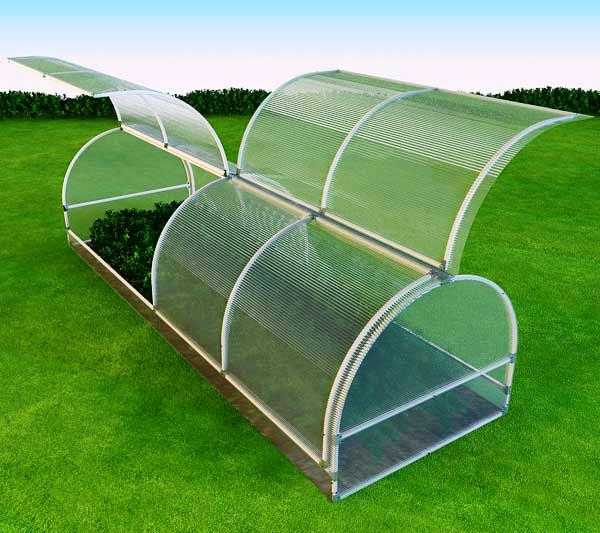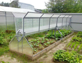 Grâce aux caractéristiques de conception, la serre vous permet d'obtenir des concombres et des légumes verts précoces sans chauffage supplémentaire. Les modèles les plus populaires sont les serres en polycarbonate à toit ouvert.