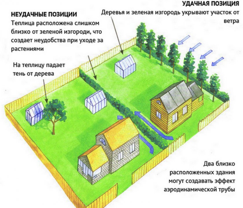 - Il est préférable d'installer la serre pour que du nord il protégeait du vent quelconque bloquer: clôture, mur d'une maison ou garage.