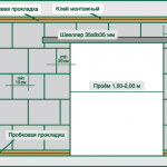 Le long du périmètre de la future cloison, ils sont fixés avec de la colle ou des vis autotaraudeuses coussin insonorisant.Il peut s'agir d'un ruban de liège d'une densité de 300 kg/m³. Une autre option consiste à utiliser du feutre de bitume. La largeur du ruban est de 3 à 5 mm inférieure à l'épaisseur du bloc.