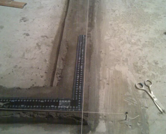 Pour les sols irréguliers, une base est préparée sous la cloison. Avec une grande différence de hauteur construire le coffrage de la taille requise... Posez deux barres d'armature d'un diamètre de 8 mm et remplissez le coffrage avec une chape ciment-sable d'une résistance de M150. Pour ce faire, mélangez du ciment et du sable dans un rapport de 1: 4. La couche de base ne doit pas être inférieure à 30 mm.