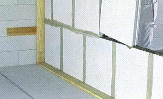 Pour la commodité d'empiler des blocs verticalement le long de la marque sur le mur, vous pouvez clouer un bloc de bois. Lors de l'installation de la dalle, elle est plaquée contre le bloc de marquage.