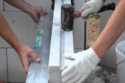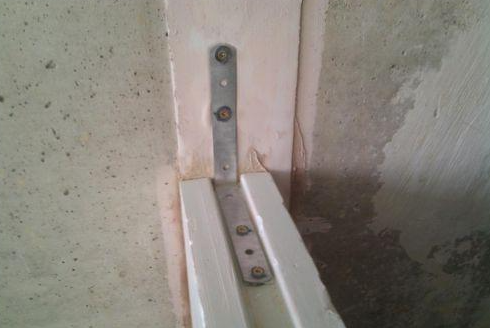 Si la maison est nouvellement construite et que le retrait n'est pas terminé, au lieu d'une fixation rigide avec renfort, les blocs sont fixés au mur avec des coins flexibles. Il est pratique d'utiliser des cintres profilés.