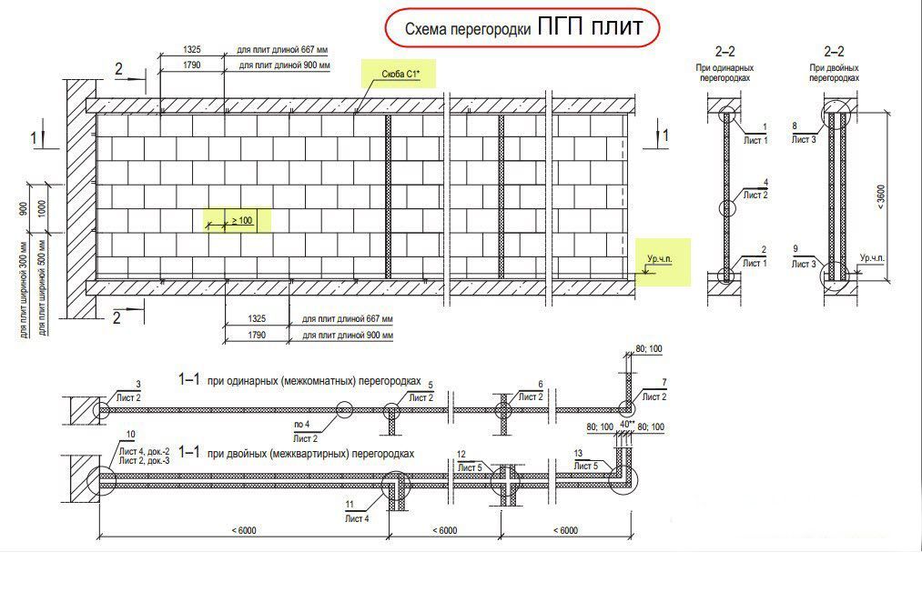Sur les dalles ordinaires, il est permis d'installer des murs et des cloisons uniquement dans des bâtiments et des structures présentant des indicateurs d'humidité et de température normaux du microclimat. Le bloc à rainure et languette résistant à l'humidité (hydrophobisé) convient aux pièces humides.