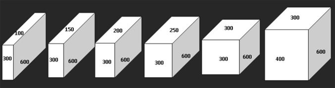 Les tailles des blocs de béton mousse sont différentes. Cela dépend de la destination. Les produits pour les fondations et les murs porteurs sont fabriqués dans d'autres tailles afin de renforcer la résistance à l'aide du moule.