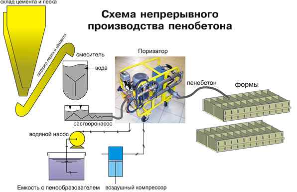 Pour obtenir le poids spécifique requis du béton mousse, le mélange doit être compilé à partir de certains ingrédients: