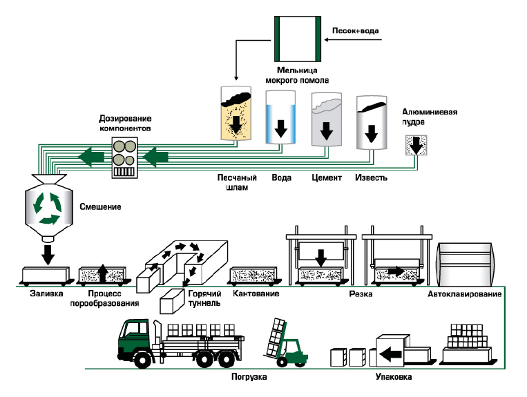 Produire des matériaux cellulaires méthode autoclave et non autoclave. Dans le premier cas, la masse expansée durcit sous pression dans un régime à haute température, et la seconde méthode consiste à mettre en conditions naturelles.