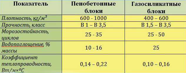 La principale différence entre un bloc de silicate de gaz et un bloc de mousse réside dans la structure des cellules internes, d'où l'inadéquation des qualités. Les caractéristiques dépendent de la marque, de la densité.