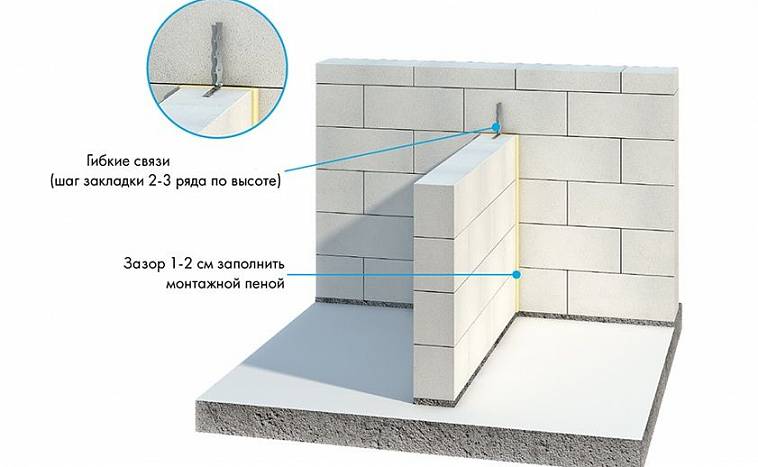 Le plus souvent, des cloisons en béton cellulaire sont construites après la construction de la charpente du bâtiment... Si cela est fait plus tôt, au stade de l'installation du chevauchement interplancher, des dommages aux blocs ou la destruction de l'ensemble de la cloison sont possibles.