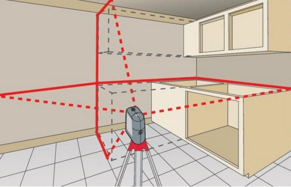- A l'intersection du plafond et des murs opposés marquer deux points... À ces endroits, l'un des côtés de la cloison sera situé à l'avenir.