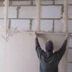 - Après avoir posé la première rangée donner l'opportunité de solidifier la solution, car lors de l'installation de la deuxième rangée, des mouvements sont possibles qui violent la géométrie du mur.