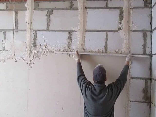 Les murs en béton cellulaire doivent être finis. Commence travail au plus tôt dans un mois après la pose. Ceci est dû au fait le matériau rétrécit 2-3 mm par mètre de hauteur et la finition sera détruite.