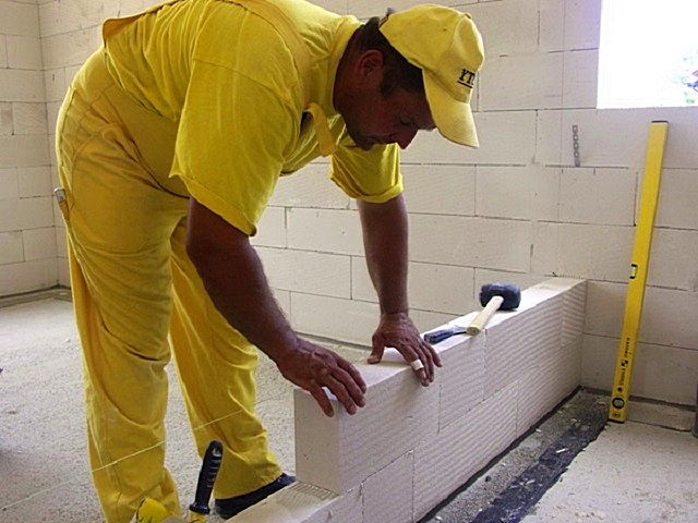 - Installez des blocs de béton cellulaire sans attendre que la solution sèche.