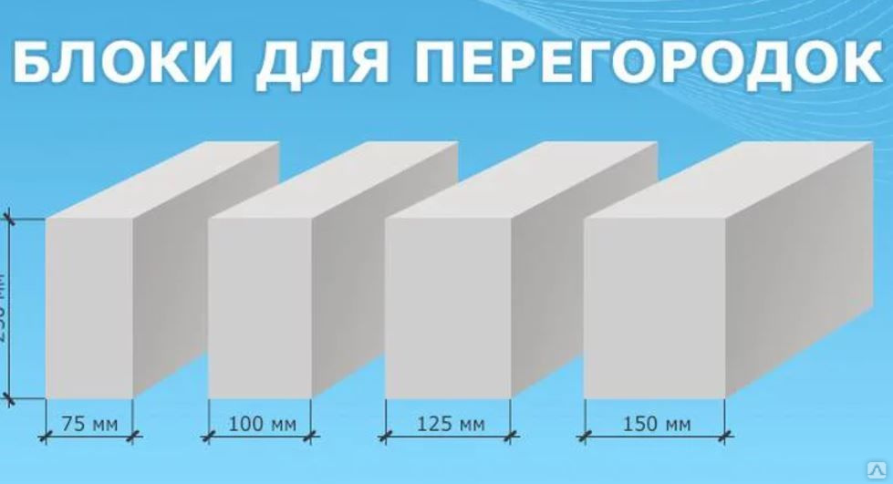 Des bienspropriétés visco-isolantes a une cloison en bloc aéré épaisseur 150-200 mm... Si le paramètre est important, ne pas utiliser de produits de 75 et 100 mm. Bloc de gaz de séparation avec indice de densité D500 ou D600 est la meilleure solution si le mur agit charge jusqu'à 150 kg... Les cloisons légères peuvent être réalisées en matériau de caractéristiques D350 ou D400.