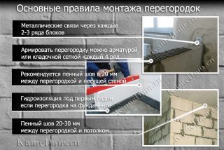 Si la portée de la partition est supérieure à 3 mètres, il faut renforcement tige en polymère. Le renforcement est posé après 3-4 rangées, sur la base de ce calcul, des consommables sont achetés.