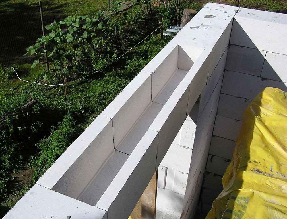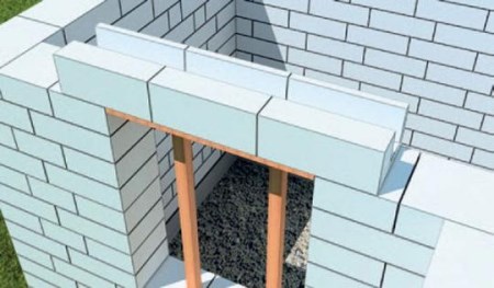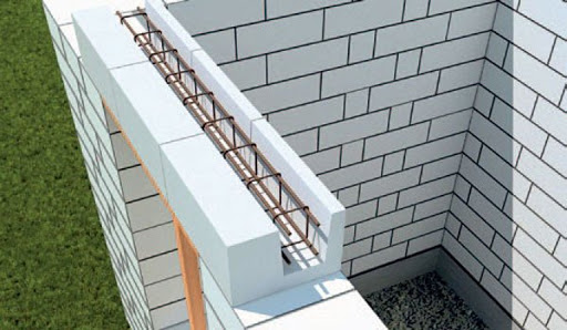 Une maison en béton poreux de tout type a besoin de renforcement. Toutes les 4 rangées supérieures, les ouvertures des fenêtres et des portes doivent être renforcées. Pour cela, il n'est pas nécessaire d'utiliser des structures en béton armé prêtes à l'emploi. Les linteaux en béton cellulaire sont beaucoup plus légers, plus faciles à installer et ne créent pas de ponts thermiques.