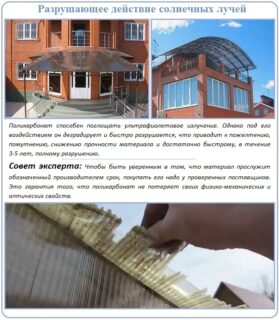Les progrès de l'industrie chimique permettent de créer des matériaux de construction dont les propriétés sont supérieures aux produits fabriqués à partir de matières premières naturelles. Divers types de polycarbonate sont largement utilisés en raison de leurs qualités de consommation élevées et de leurs caractéristiques techniques.
