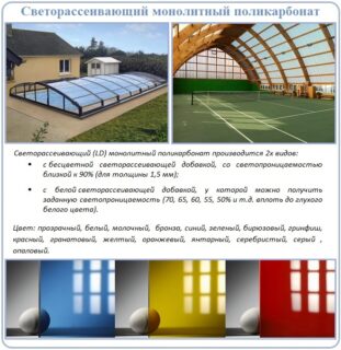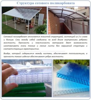 Les principaux avantages du matériau requis dans la construction sont la transparence, la résistance, la flexibilité. Extérieurement, le panneau peut ne pas différer du plexiglas ou du plastique transparent, mais il leur est bien supérieur dans toutes les caractéristiques importantes.