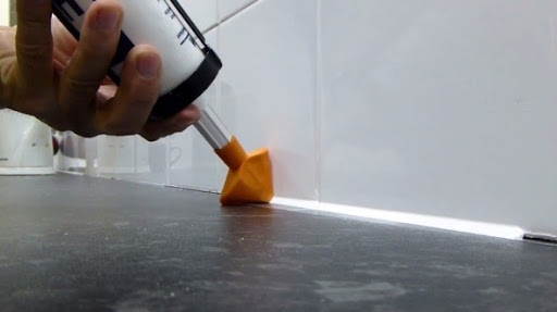 - Le nez de la buse est amené au début de la couture, la gâchette est tirée et le joint est rempli. Le matériau est appliqué uniformément, sans interruption. Lors du traitement des joints verticaux, remplissez le joint de haut en bas.