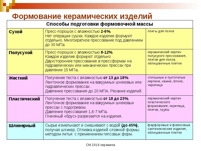 - Plastique. Les matières premières à 30% d'humidité sont pressées et cuites à une température de 1000°.