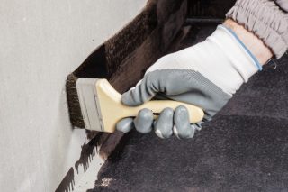 Pour augmenter l'adhérence des matériaux, ils sont roulés sur la surface avec un rouleau.