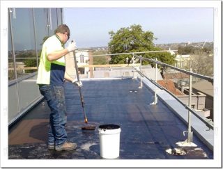 La surface du toit est imprégnée de terre, où l'isolation en verre ou autre matériau de toiture sera posé. L'apprêt n'est pas appliqué sur les bandes de fibre de verre elles-mêmes.