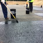 Lors du traitement d'un toit en dalles de béton armé, la surface des éléments est traitée et les joints bout à bout entre les panneaux sont imprégnés. La couche de mastic suivante est également placée dans les joints. Par conséquent, à l'aide d'un apprêt, ils assurent l'adhérence des matériaux dans un endroit difficile à atteindre.