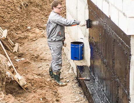 - imperméabilisation et apprêt de fondations pour l'isolation;
