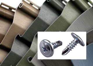 - Pour fixer la finition, utilisez des vis autotaraudeuses ordinaires. Cependant, le matériel est enregistré en tenant compte des conditions hivernales. Le revêtement n'est jamais fixé solidement. Tout matériau - bois, métal, acrylique, change de volume lorsque la température change. La quantité de changement dépend du coefficient de dilatation thermique. La différence entre le mur, le cadre et la finition peut être assez importante. Par conséquent, lors de la fixation, un espace technique subsiste entre la tête de vis et la lamelle - pour l'expansion. En hiver, l'écart recommandé atteint 10 à 12 mm contre 5 à 6 mm en été.