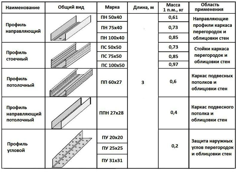 Traditionnellement, des cloisons sèches sont installées sur la caisse. Les éléments du cadre de support sont réunis par des pièces de liaison qui donnent la taille et la forme souhaitées. Ils produisent un profil de différentes tailles pour cloisons sèches, dont les tailles et les types dépendent du type de construction. Il existe des éléments pour le revêtement du plafond, des murs, la construction de cloisons autoportantes.