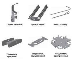 - ancre pour abaisser le plafond en plaques de plâtre, régler si la suspension n'est pas suffisamment longue;