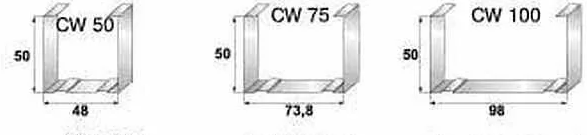 Modèle UW mettre en cerclage au sol, plafond, mur adjacent pour augmenter la rigidité des racks. Les bandes servent d'élément de guidage pour installer un profilé vertical pour la plaque de plâtre, dont les tailles varient: