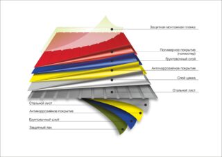 Le revêtement polymère décoratif a une épaisseur de 25 à 200 microns. En couche épaisse, ils font un relief sous la texture du bois et de la pierre. Le dos du profilé est recouvert d'un vernis résistant. Les couches de peinture et de vernis sont appliquées par laminage continu d'un rouleau galvanisé sur une ligne automatique. Après cela, l'acier peint est transféré vers des convoyeurs d'estampage, de hachage et de traction.