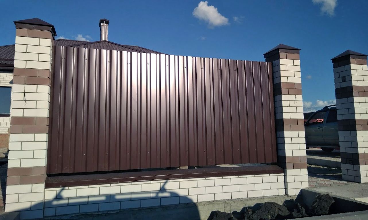 - Type A et B. Conçus pour la fabrication de clôtures, clôtures, ils sont placés en remplissage entre poteaux en brique, pierre, acier, béton. Ce type est toujours utilisé sur la surface du profil par défaut. Les nervures trapézoïdales sont régulièrement espacées de 137,5 mm. La crête mesure 35 mm de large au sommet, avec une partie abaissée de 67 mm entre elles.
