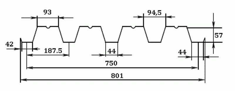 - une section trapézoïdale classique est utilisée, il y a un renfort supplémentaire sous la forme d'une rainure sur la crête de la vague;