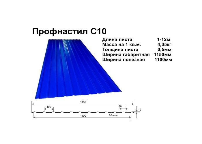Les dimensions physiques de la tôle profilée C10 sont indiquées sur l'emballage. Cependant, sa surface utilisable est moindre. Les feuilles sont posées et fixées avec un chevauchement, tandis qu'une partie de la zone est perdue. Si la largeur totale du métal laminé est de 100 cm, sa largeur utile n'est que de 90 cm.Ces données sont généralement également indiquées sur l'emballage.