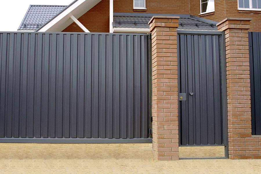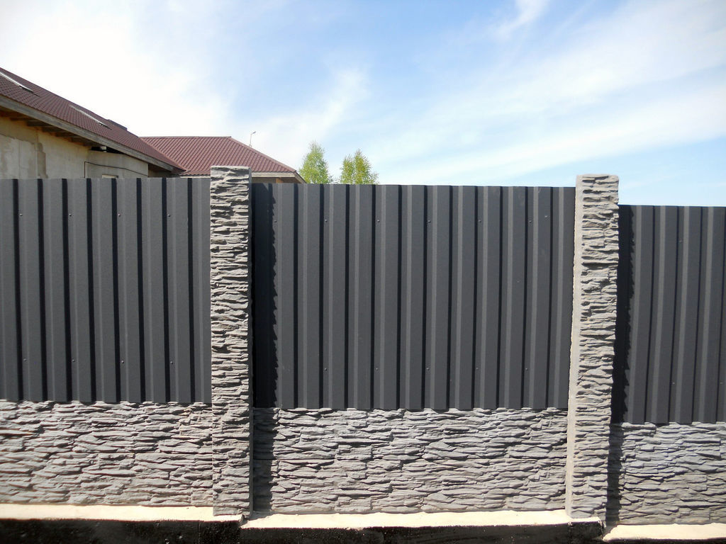 Dans la construction de logements privés, le carton ondulé 7024 est utilisé pour la construction de clôtures, de clôtures. La couleur grise se marie bien avec la pierre naturelle, les briques rouges et blanches, par conséquent, les inserts entre les poteaux de ces matériaux sont en tôle profilée. La version allégée de la clôture est une bande de tôle profilée gris foncé, fixée sur des supports à partir d'un tuyau métallique.