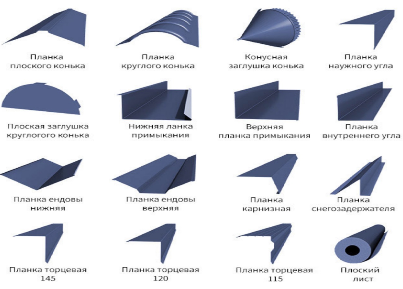 Les fabricants fabriquent des bandes, des capuchons et des coins supplémentaires pour la tôle profilée en graphite. De plus, ils fournissent aux utilisateurs des vis autotaraudeuses pour correspondre à la couleur du matériau. En forme de U, des bandes de clôture et de parapet, des éléments externes et internes sont produits. Pour une feuille mate, les vis autotaraudeuses mates sont fabriquées de manière à ne pas briller sur un plan commun. La quincaillerie est réalisée avec une longueur de 35 mm (pour la base) et 19 mm (pour un profilé métallique) avec une tête pour une clé hexagonale.