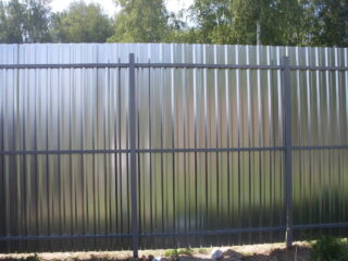 - Plastisol. Produit à base de PVC avec inclusion de plastifiants et de modificateurs. Le matériau brûle à la lumière directe, il est donc placé à l'ombre ou des couleurs plus claires sont choisies. Le plus souvent, le métal profilé a une surface gaufrée pour les fibres de bois ou la pierre, la maçonnerie.
