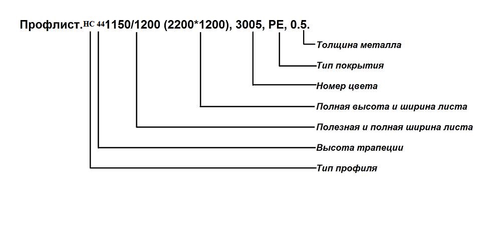 Il existe une notion de largeur commune et utile. Cela dépend de la hauteur de l'ondulation, car chaque panneau chevauche le panneau adjacent avec des chevauchements dans une ondulation. Le métal profilé porteur / mural NS 44 est produit avec une largeur de 1052 mm, dont 1000 mm tombent sur l'ouvrier, et 52 mm vont au chevauchement de l'ondulation lors de l'installation. La taille utile est indiquée en millimètres, de sorte que la couverture du plan de toit est immédiatement visible.