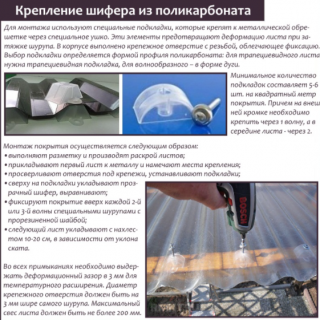 Les tôles ondulées sont un produit populaire de cette matière première. Il est à noter qu'un côté de l'ardoise a texture ondulée sous forme de gouttes ou de glace... Le principal avantage du plexiglas est absorption du bruit.
