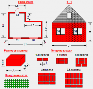 Avant de calculer une brique, vous devez soustraire la surface des fenêtres et des portes de la surface totale des murs, et également décider du type de maçonnerie.